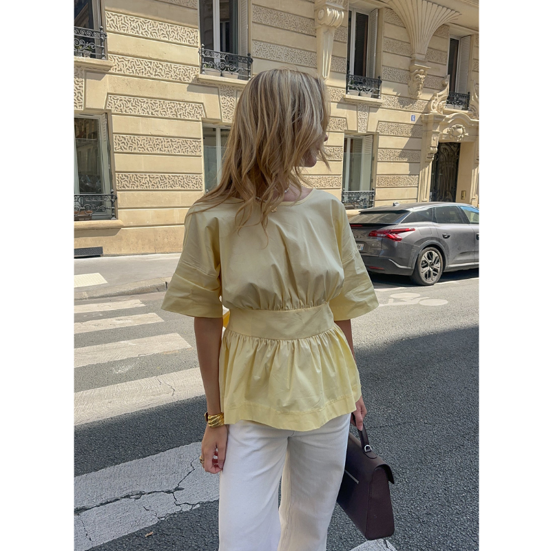 Evy - bluse uden ryg blander moderne struktur med blød femininitet. Designet med et flagrende snit, der fremhæver din silhuet, bringer den ubesværet ynde til ethvert tøj. Den knudede kant tilføjer et poleret slutte, mens den diskrete lyserøde toneholder den alsidig og elegant. Kombiner den med denim til en afslappet dag eller en nederdel for et elegant se. Blød, men iøjnefaldende, Evy - bluse er din nye gå til for enestående enkelhed.