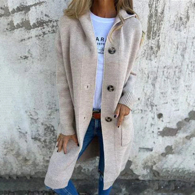 Adriana - Lang jakke med hætte og knapper