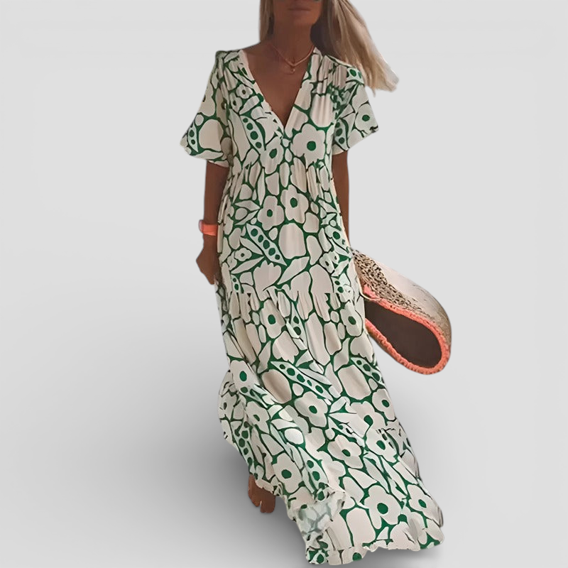 Træd ind i ubesværet elegance med Christine kjolen, din nye sommerfavorit. Denne lette kjole er designet til komfort og stil og har en flatterende V udskæring og en løs, flagrende pasform, der holder dig kølig og selvsikker. Føl dig let, stilfuld og fri hele sommeren lang. Uanset om du er på vej til brunch, slentre på stranden eller nyder en solrig dag i byen, er Christine det perfekte valg.