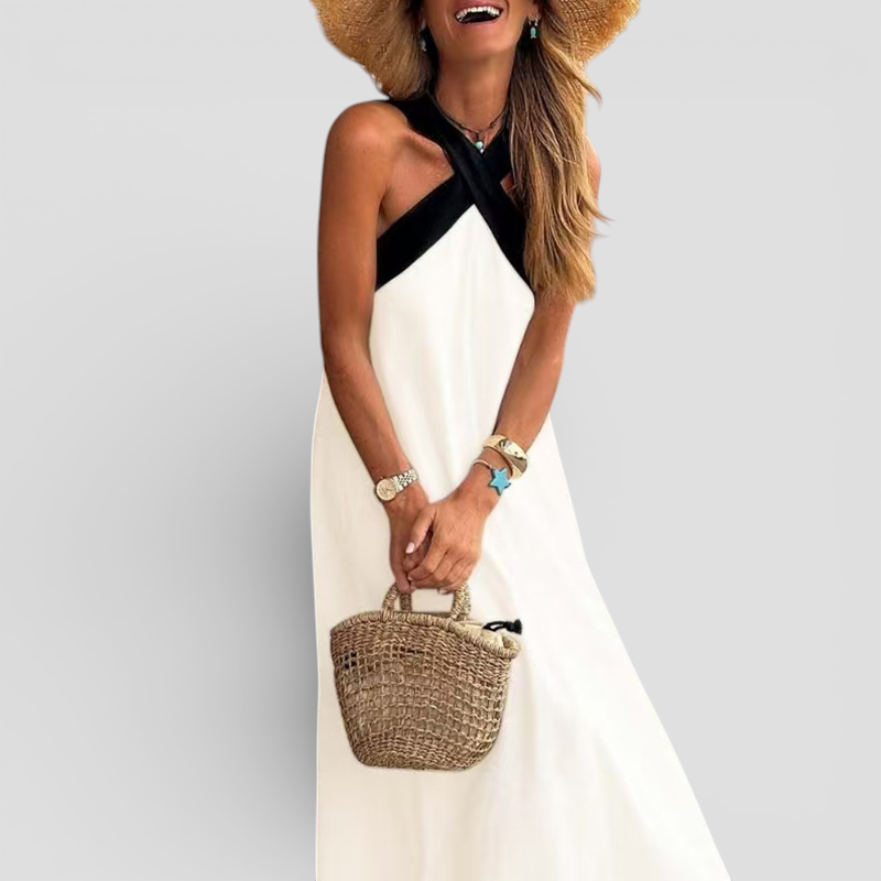 Delphine er din perfekte ledsager til varmt vejr let, flagrende og ubesværet elegant. Med sit luftige stof og flatterende crossover udskæring tilbyder denne kjole komfort og charme fra stranden til terrassen. Den afslappede pasform giver fri bevægelsesfrihed, mens den uden skuldre detalje tilføjer et strejf af romantik. Delphine er et uundværlig i enhver sommerkuffert.