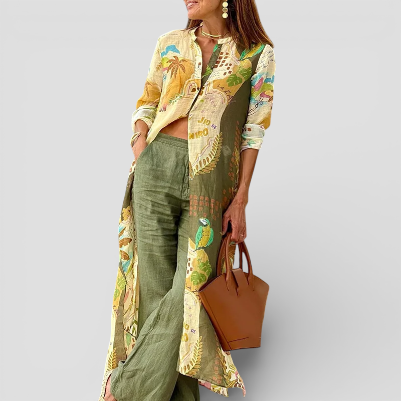 Byd velkommen til ubesværet elegance med Jessica hørsættet dit foretrukne tøj til solrige eventyr. Let og afslappet dette sæt tilbyder den perfekte blanding af komfort og stil fra morgengåture til middage ved solnedgang. Med sin brugervenlige silhuet og tidløse design er Jessica et uundværligt tøj til varme dage, hvor du vil føle dig og se bedst muligt ud.