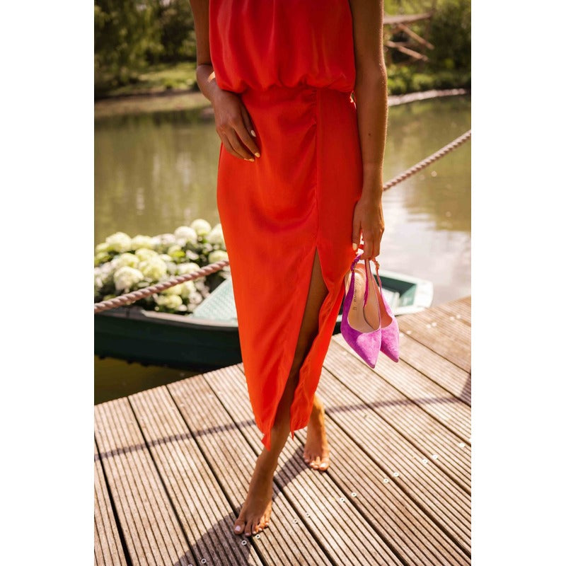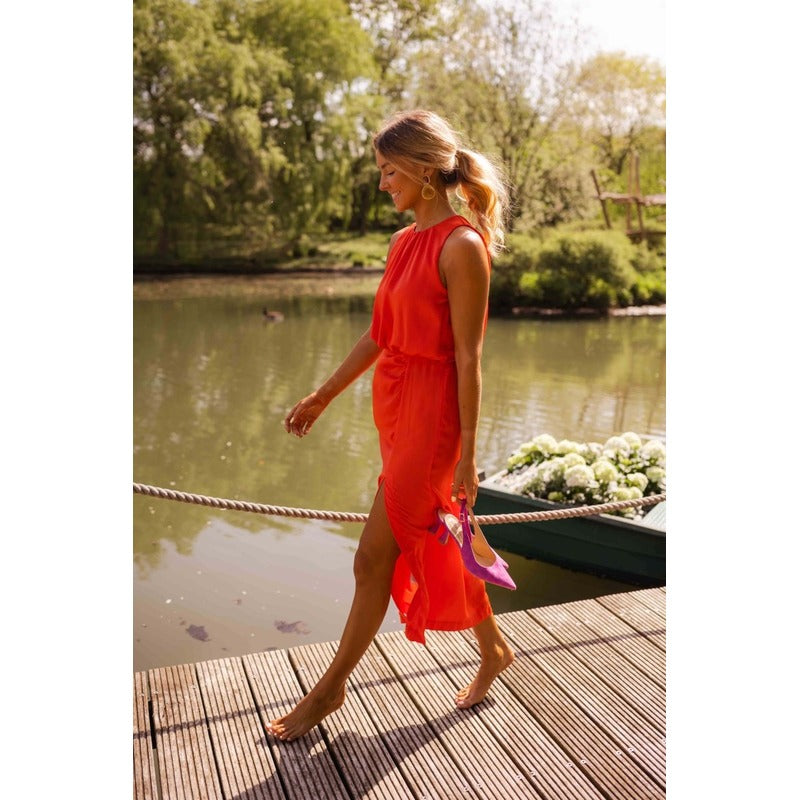 Træd ind i sæsonen med Lisa, en midikjole med høj hals, der er designet til at fremhæve din femininitet med ynde og lethed. Med en elegant slids i siden og en luftig silhuet giver denne kjole en ransagning blanding af sofistikering og komfort. Uanset om du nyder en julesolnedgang eller tiltrækker opmærksomhed ved en sommersammenkomst, holder Lisa dig ubesværet stilfuld hele dagen lang.