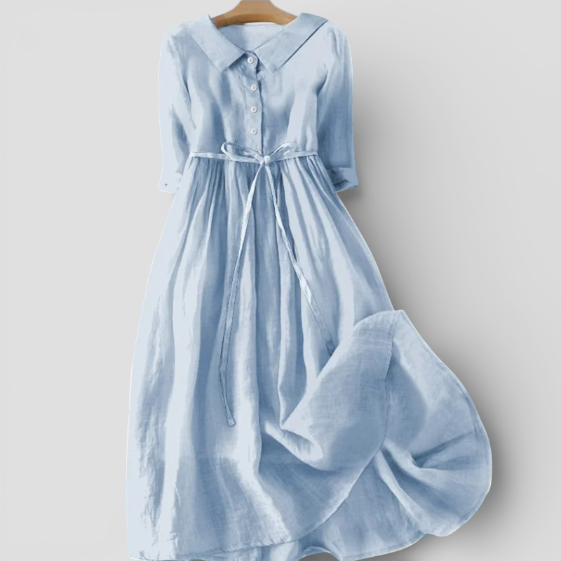 Træd ind i ubesværet elegance med Lux, kjolen der perfekt balancerer komfort og stil. Designet med en flatterende snøredetaljer i taljen skaber den en smukt defineret silhuet, samtidig med at den er behagelig at have på hele dagen. Uanset om det er til en gåtur langs stranden eller en afslappet udflugt, tilføjer Lux et strejf af klassisk charme til ethvert øjeblik.