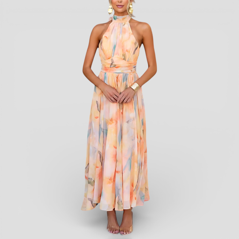 Strål med selvtillid i Naomi maxikjolen med akvarelprint en betagende blanding af kunst og elegance. Med en flatterende halterneck udskæring og en slående åben ryg er denne kjole designet til at få dig til at føle dig strålende fra alle vinkler. Den flydende maxi længde og den tætsiddende form skaber en yndefuld silhuet, der gør Naomi til det perfekte erklæring til uforglemmelige sommerøjeblikke.