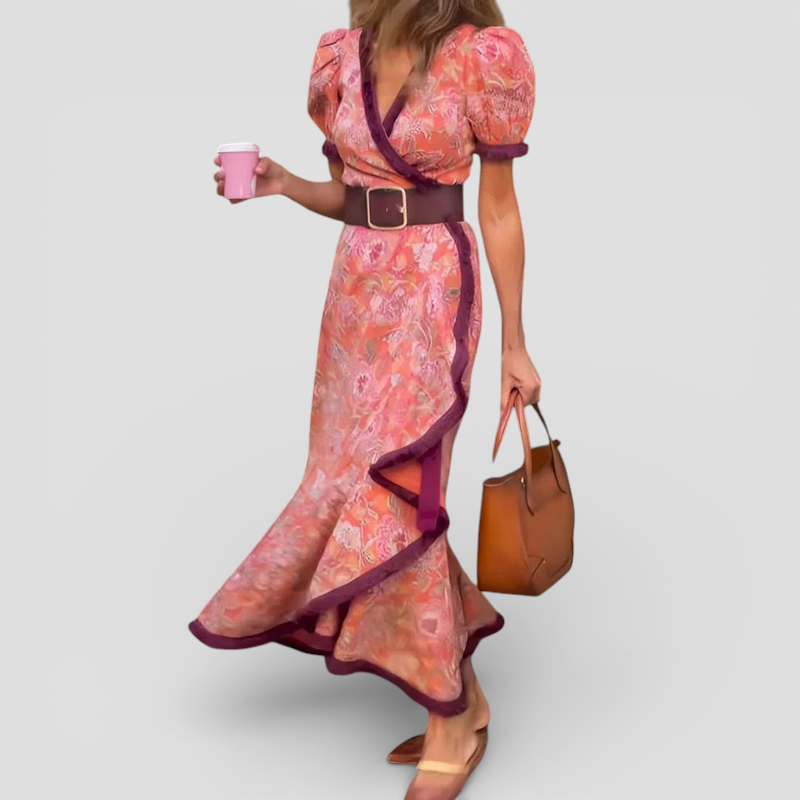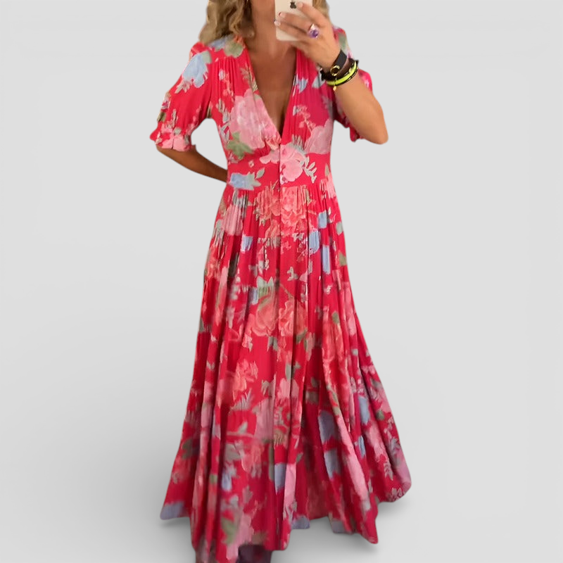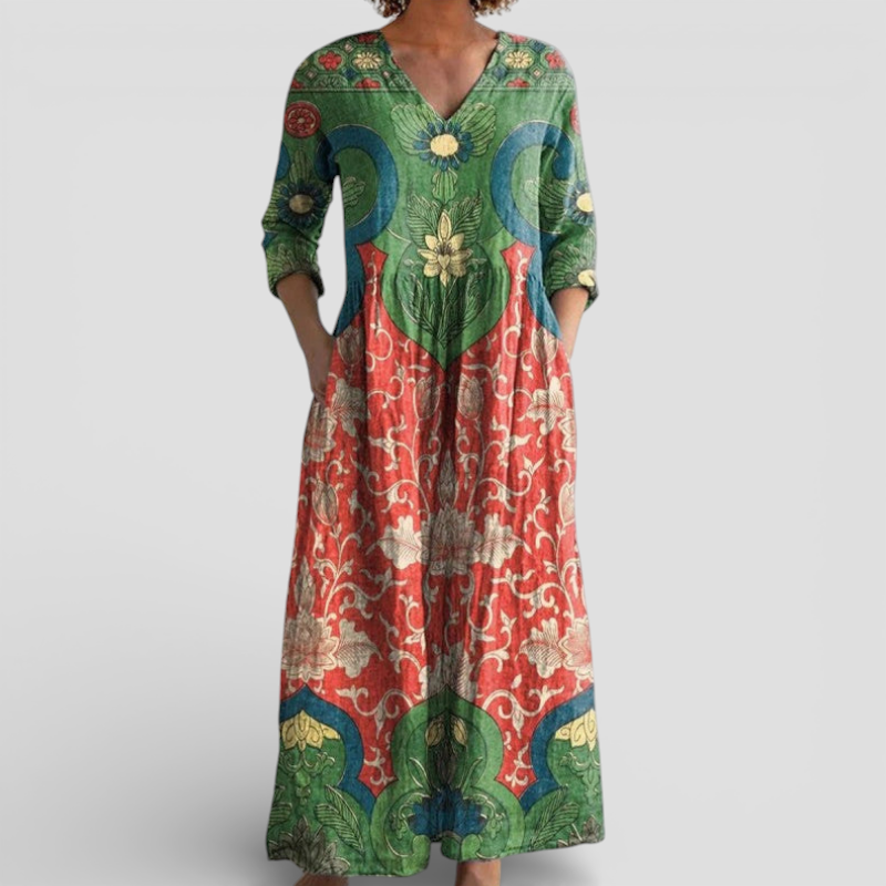 Aroa - Vintage blomstret lang kjole