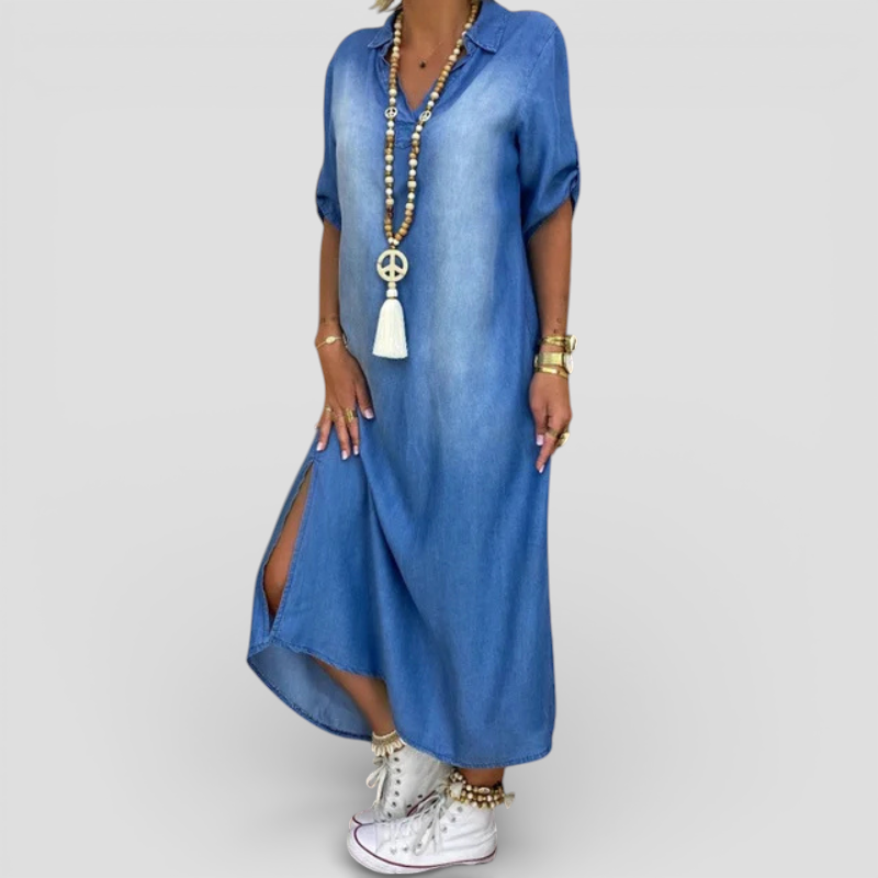 Lia - Lang kjole i denim-look