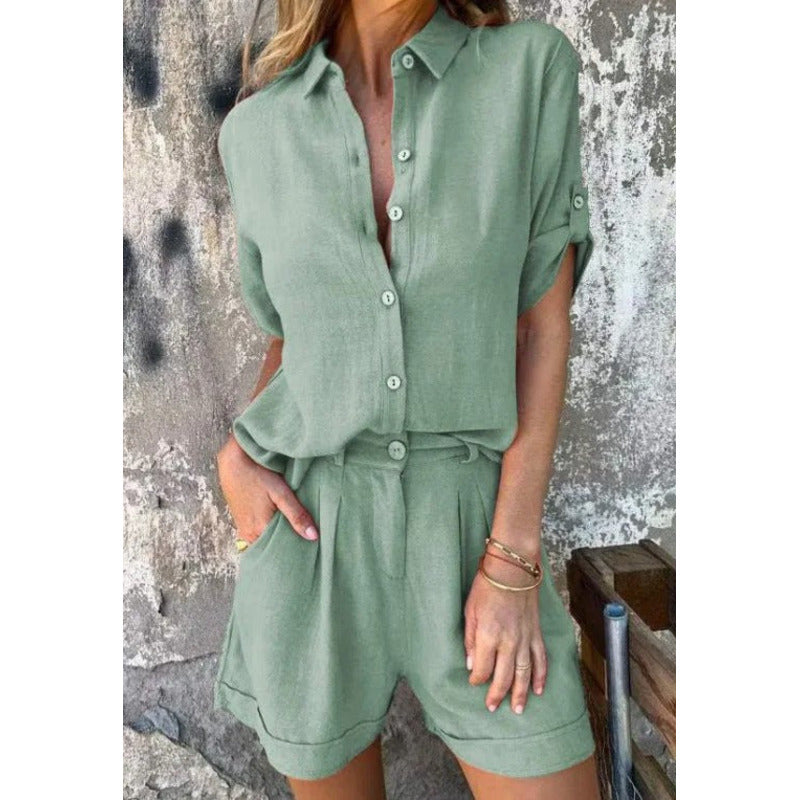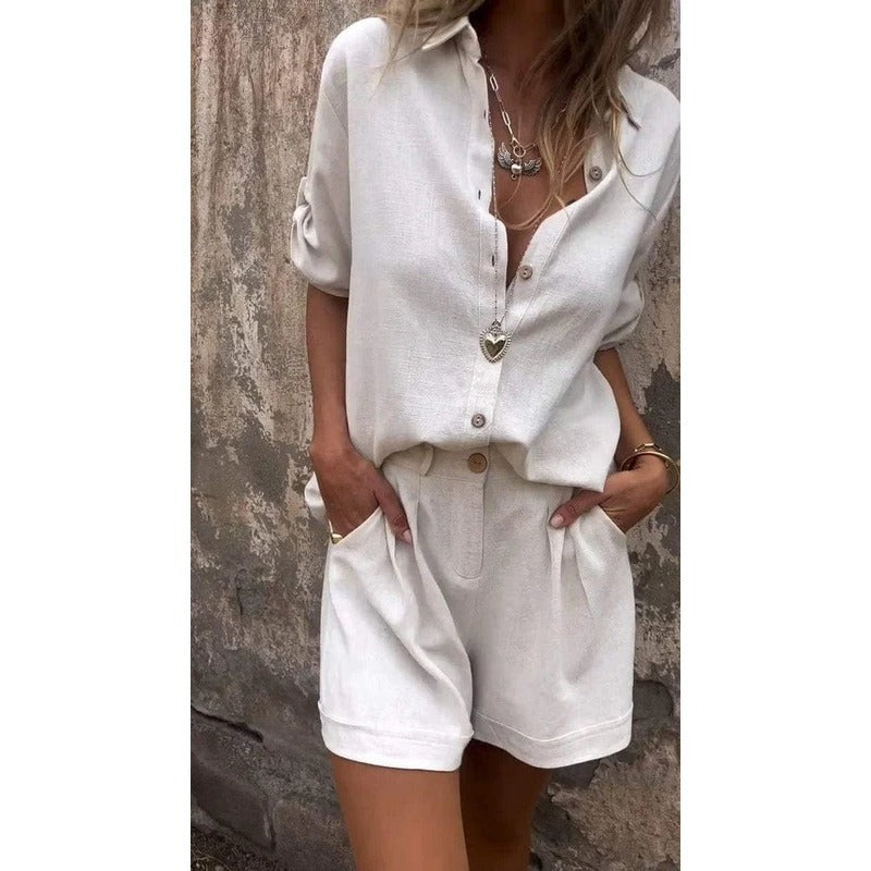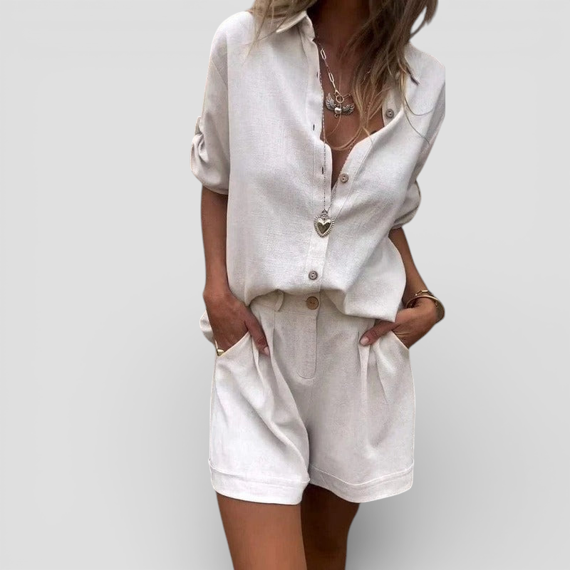 Træd ind i afslappet luksus med Linnea, det luftige linnedsæt skabt til varme forårsdage og afslappede sommernætter. Dette ubesværet elegante sæt er designet til at holde dig kølig og komfortabel, og hjælper dig med at se velpoleret ud uden besvær. Uanset om du slapper af derhjemme eller slentrer gennem byen, er Linnea din foretrukne løsning til komfort og ro i ethvert øjeblik.