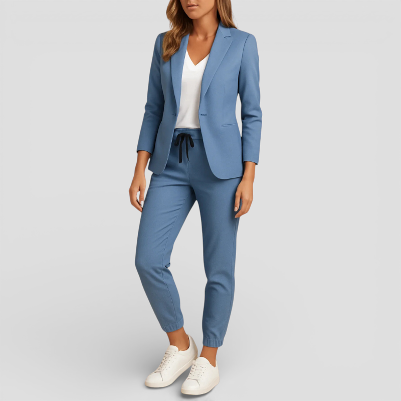 Træd ind i sofistikeringen med Monique damejakkesættet i to dele et moderne væsentlig, der balancerer elegance med komfort. Designet til kvinder, der værdsætter stil og alsidighed det er perfekt til at starte dagen på arbejdet og ubesværet gå over til aftenens høvl. Det raffinerede snit skaber en flatterende silhuet, der forbedrer ethvert tøj. Et tidløst valg for den selvsikre og moderne kvinde.