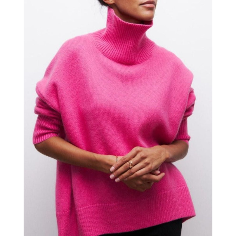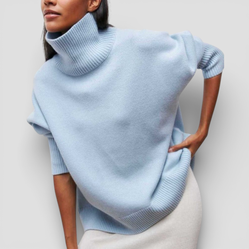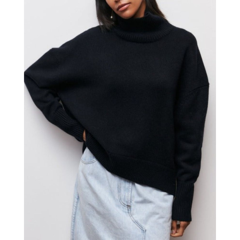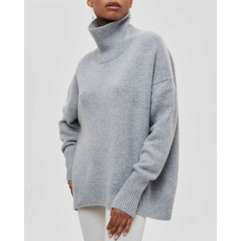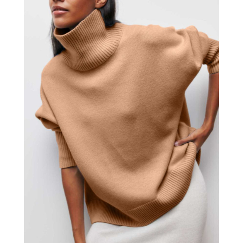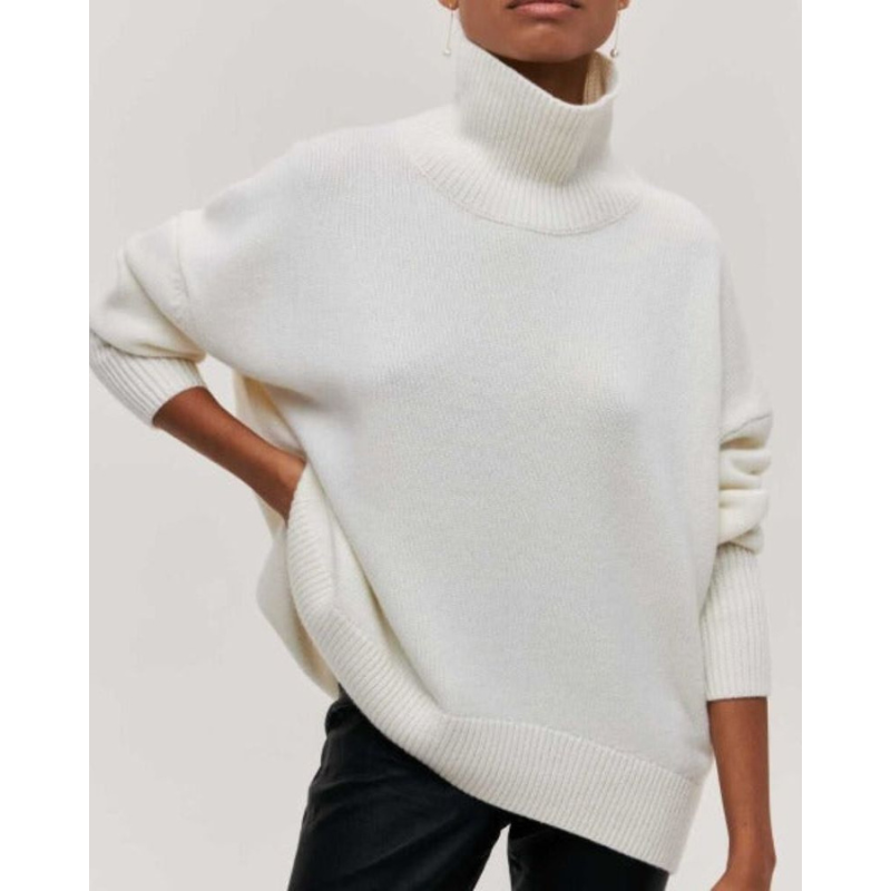 Evy rullekrave trøjen er den perfekte blanding af komfort og moderne stil. Dens generøse rullekrave og afslappede pasform gør den ideel til køligere dage og giver en hyggelig følelse, samtidig med at den bevarer et poleret se. En alsidig sweater, der nemt løfter både afslappede og raffinerede tøj. Et tidløst stykke tøj, der problemfrit går fra at slappe af derhjemme til at være ude med stil.