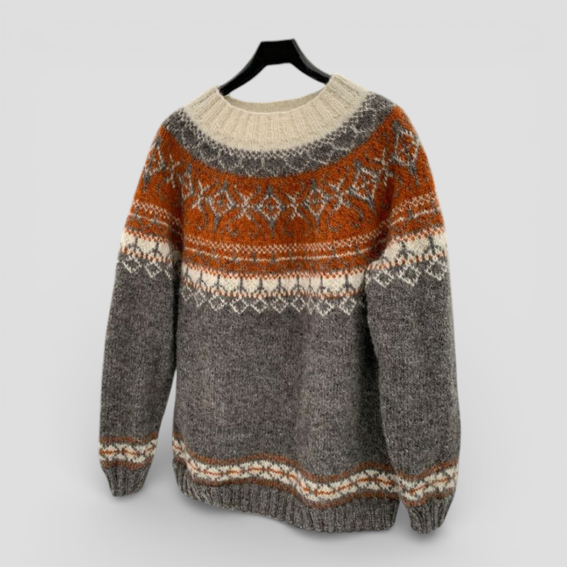 Lea - Grå og blå striktrøje med attraktivt mønster